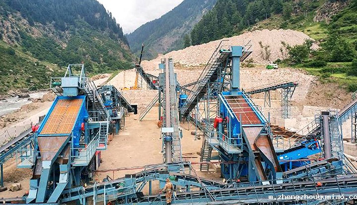 The vibrating feeder feeds the material, and then the material will be crushed by primary jaw crusher (the jaw crusher shall install screen to remove dust and thin blocks) from 500 mm to 130 mm or below. Then the secondary crushing will use cone crusher to crush the material from 130 mm to 40mm or below. Then comes with the third crushing with the application of impact crusher, through which the material will be crushed and screened by vibrating screen into 20-40mm. 10-20mm. 5-10mm, 3-5mm that are the required final products.