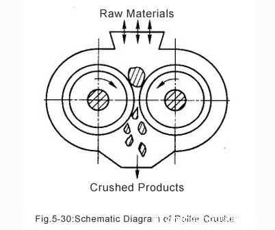Working principle please see Fig.5-30. The materials are feed from the top of crusher, the two rollers rotate relatively. The friction between material and roller surface makes material enter into chammer and be crushed. After crushing, the material drop out from discharge gap.