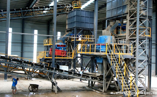 3、制砂阶段:制砂阶段一般是用于破碎阶段之后,就是在破碎流程之后配置一台制砂机,制砂机一般选用立式冲击taptap国际版下载地址、立式复合taptap国际版下载地址、立轴冲击taptap国际版下载地址。制砂机可将破碎流程生产出来的石子进一步细碎和整形,产出5mm以下的机制砂规格。