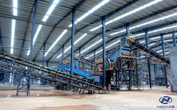 该生产线位于河南洛宁,时产砂石料200吨,厂区采用全封闭式生产厂房,骨料生产采用三级破碎工艺,全部物料经水冲洗,从根本上解决了产品颗粒尺寸与级配、颗粒形状、颗粒组成一致性,洁净度等高品质建筑砂石骨料的质量要求,实现了生产线进行的一键启停,生产污水的循环利用,最大程度上的符合环保要求。