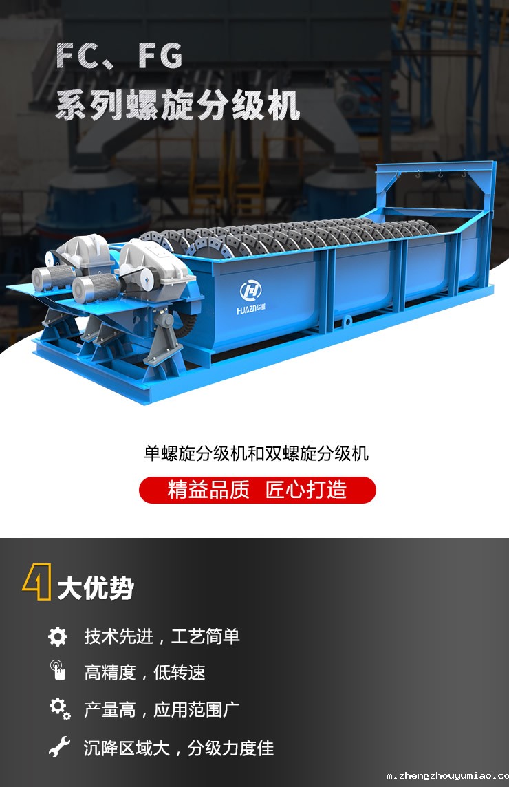 该分级机主要用于选矿、砂石厂磨矿回路中的预先分级、检查分级,以及洗砂 作业中的脱泥、脱水等作业。